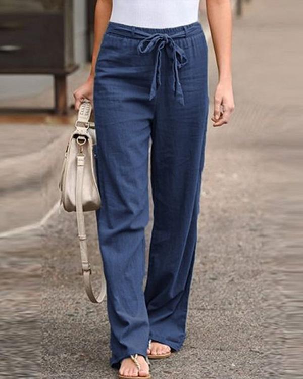 Plus Size Women's Linen Cotton Straight Pants